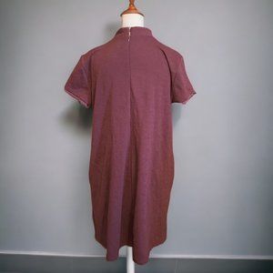 Simply Vera by Vera Wang Maroon A line mock neck dress short sleeve with an embossed design on the fabric. Stretch Fabric. With pockets