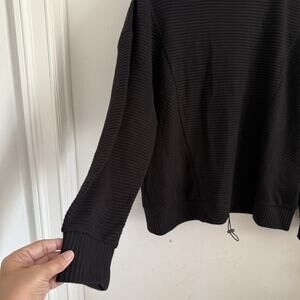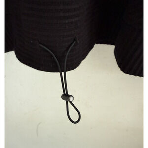 Simply Vera Pullover Stretchy Ribbed Sweater 3/4 Sleeve Black Drawstring Hem Cozy Cabin Warm