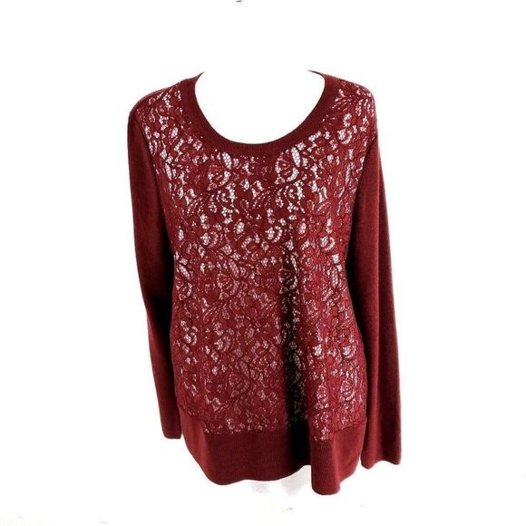 Simply Vera Red Floral Blouse Red Size PL Scoop Neck Cotton White Undershirt
