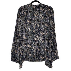 A chic, stylish long sleeve top by Simply Vera Vera Wang. This black, semi-sheer top features a floral print and a handkerchief hem. Size XL. Perfect for a casual or dressy look. Comes from a smoke free home.