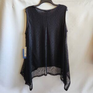 Simply Vera Sleeveless Black Modern Botanical Lace Lined Tunic XL