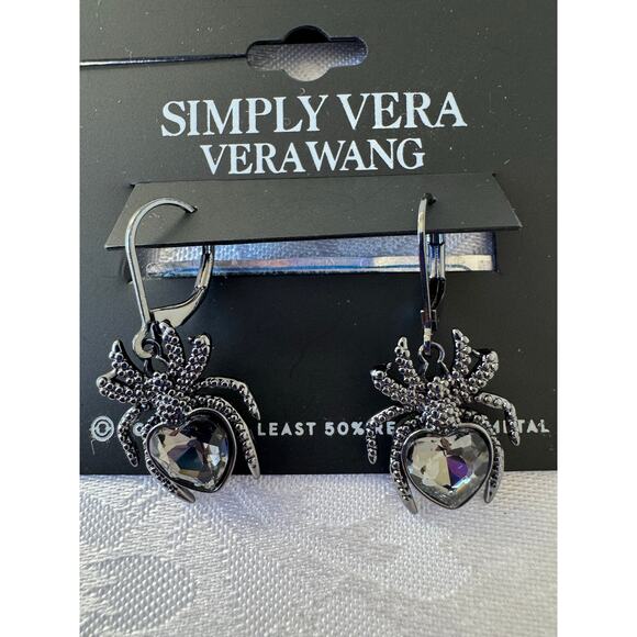Simply Vera Spider Heart Gem Dangle Earrings Gothic Halloween NWT Jewelry