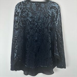 Simply Vera Top Size Large Black Teal Velvet Burnout Whimsygoth Goth Grunge