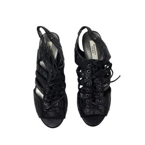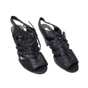 2010 Simply Vera Vera Wang Bl Lace Up Studded Sling Back Shoe 7.5
