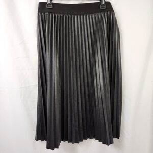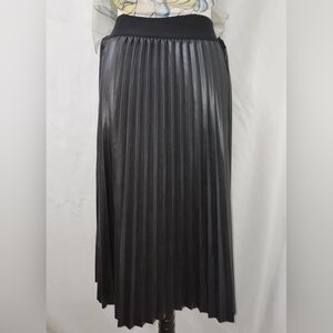 Elegant black A-line skirt. Features pleated design. Perfect for any occasion.