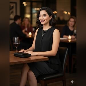 Chic black tank top with layered design. Sleeveless and stylish. Perfect for versatile wear.