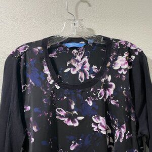 Simply Vera Vera Wang Black and Purple Floral Blouse