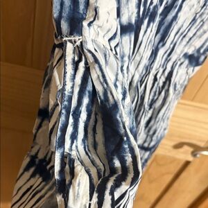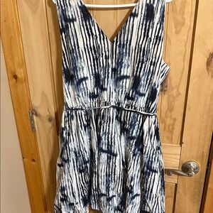 Chic mini dress fully lined with a striking blue and white pattern. Perfect for casual outings or night out.