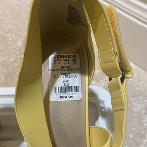 Simply Vera Vera Wang Braestar Yellow strappy sandal, sz 8.5. Never worn outside the house, and still have the original price tag on the shoe. Open toe, hook & loop closure with velcro, memory foam insole. Bright and comfy, just in time for Spring and Summer!!