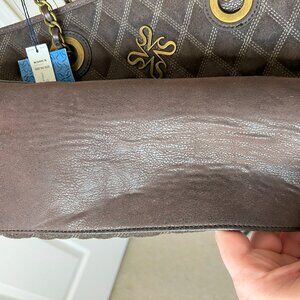 This Simply Vera by Vera Wang quilted handbag or shoulder bag is cocoa in color. It is NWT but there are some tiny light spots on the bottom of the bag. They are really hard to notice. Please see pictures and let me know if you have any questions!