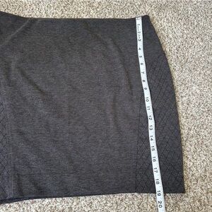 Chic charcoal pencil skirt. Features subtle side pattern. Perfect for office or evening wear.