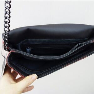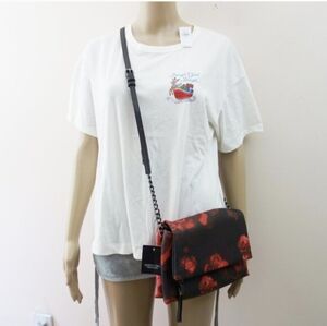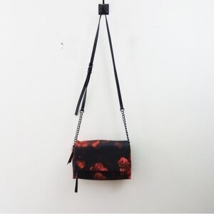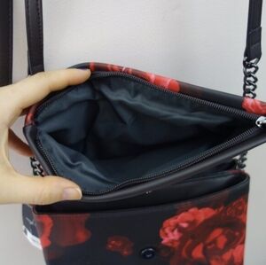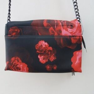 Simply Vera Vera Wang Garrison Crossbody Bag Black Red Rose Vegan Leather NWT!