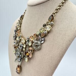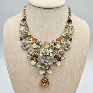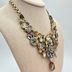 Simply Vera Vera Wang Jeweled Rhinestone Fall Color Floral Bib Necklace Signed