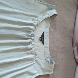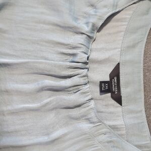 Chic and simple tank top by Simply Vera. Soft silky fabric in a light teal-blue shade. Ideal for layering or wearing alone. See additional photos for a more true color of the fabric. Try as I might I cannot get a pic with proper color. It is an icy blue.