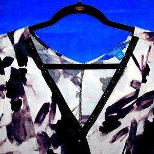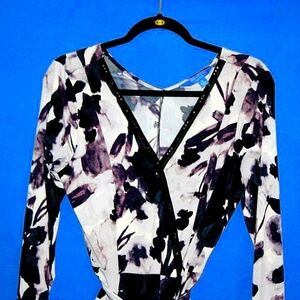 #SimplyVera #VeraWang #WrapDress #AbstractPrint #BlackAndWhite #WomensFashion #SizeMedium #OfficeWear #CasualChic #LongSleeveDress #VersatileDress #PolyesterSpandex