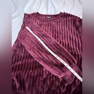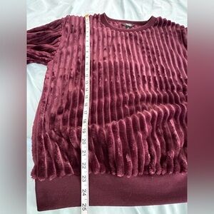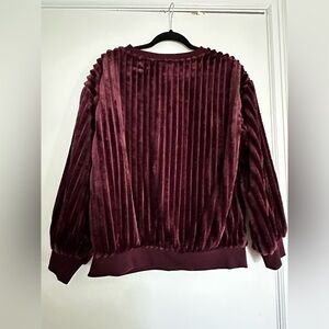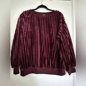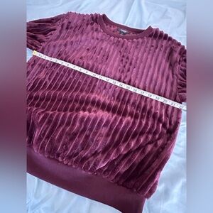 Simply Vera - Vera Wang M Plush Fuzzy Soft Vertical Striped Wine Sweatshirt. Crushed velvet fuzzy finish. Cuffed sleeves and hem. Crew neck. Excellent used condition. No rips, stains or defects. Please see pictures for measurements