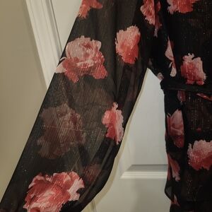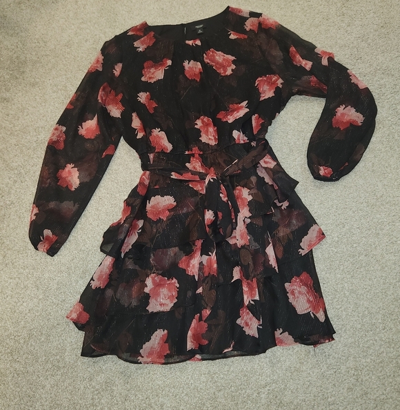 Simply Vera Vera Wang Mauve And Light Pink Floral Long Sleeve Black Dress