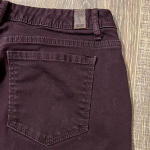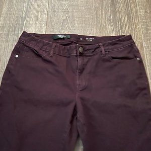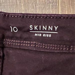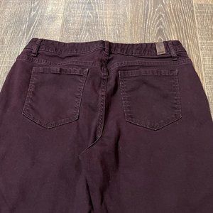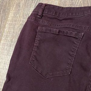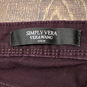 Simply Vera Vera Wang Mid Rise Skinny Jeans. Plum. Size 10. Inseam 27 “. 3 front pockets and 2 back pockets. Zip and button closure. Still in excellent used condition. Please see photos.