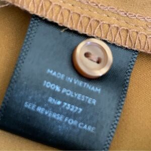 Cute mustard 1/4 button down blouse. Pleated front. Round neckline. Short roll cuff sleeves. Rounded hi-low hemline. Lightweight 100% polyester fabric. In excellent pre owned condition. Simply Vera Vera Wang Size XS