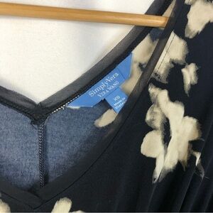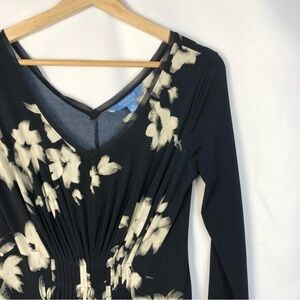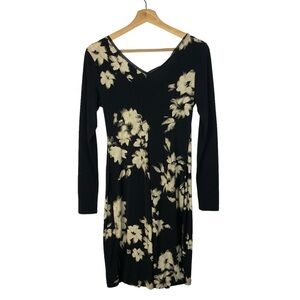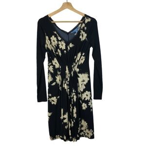 Simply Vera Vera Wang Navy Blue & White Floral Long Sleeve Knee Length Dress XS
