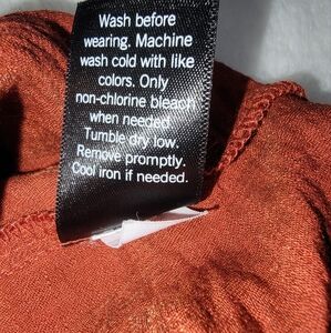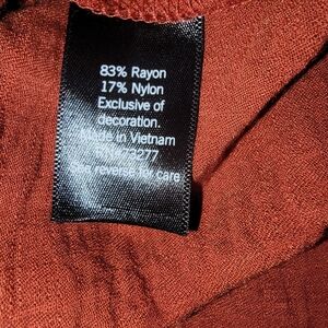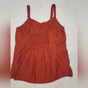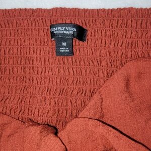 This Simply Vera Vera Wang tank top features a bustier style with a square neckline and thin straps, offering a chic and minimalist look. The burnt orange color and lightweight fabric make it perfect for warm weather, providing both comfort and style.