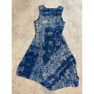 Simply Vera Vera Wang Paisley Print Sleeveless Dress Blue Boho L