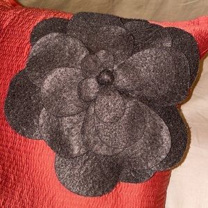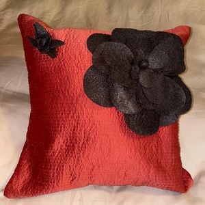 Beautiful red throw pillow with floral accents. Please check my closet for matching comforter set for purchase as well!