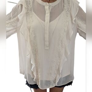 Simply Vera Vera Wang Sheer Lace Fairycore Ruffle Top Whimsical Blouse Size L