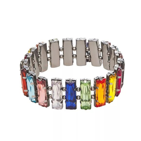 Add a pop of color to your jewelry box with this bold rainbow bars silver tone stretch bracelet from Simply Vera Vera Wang.