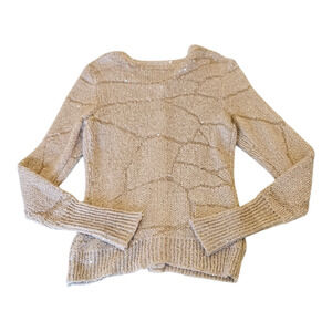 Simply Vera Vera Wang Small Beige Long Sleeve Sequin Knit Button Up Sweater
