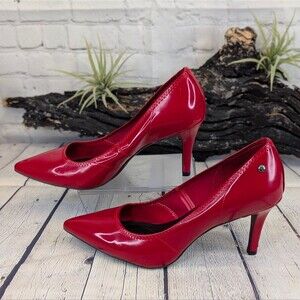 Step out in style with these stunning Simply Vera Vera Wang Stevie Red Patent Leather Pumps. These elegant shoes feature a sleek, pointed toe and a glossy red patent leather finish that adds a touch of sophistication to any outfit. The pumps have a comfortable memory foam insole and a moderate heel height, perfect for both day and night wear. The vibrant red color and high-quality craftsmanship make these pumps a must-have addition to your wardrobe. Ideal for special occasions, work, or a night out, these shoes will elevate your look effortlessly.