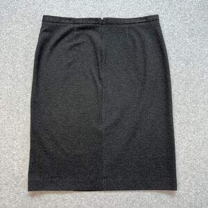 Gently Pre-owned. Machine wash. The clean lines and neutral gray color align with a contemporary, understated aesthetic. The pencil silhouette and knee length are classic features of professional or business attire. No bold patterns or embellishments—just elegant structure and subtle sophistication. This skirt fits into a city-smart wardrobe, great for work-to-evening transitions.