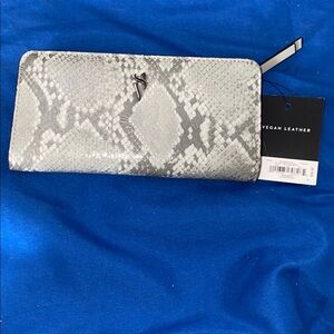This stylish gray snakeskin clutch is perfect for any occasion. Its sleek design and neutral color make it a versatile accessory for your wardrobe.
