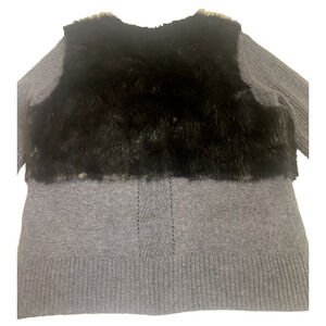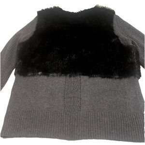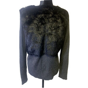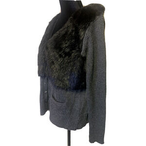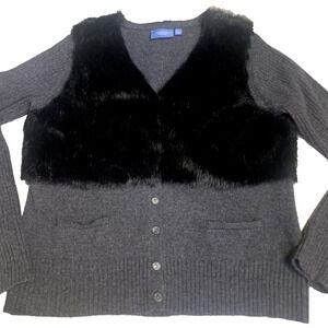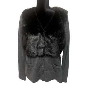 Simply Vera -Vera Wang Sweater Womens XL Ex-Large Grey Wool Faux Fur Cardigan