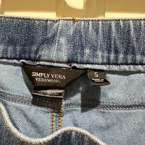 Simply Vera Vera Wang pull on denim leggings with back pockets. Size Small. 66% Cotton, 30% poyester and 4% spandex. Machine wash cold and tumble dry low. Excellent used condition.