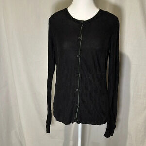 Simply Vera Vera Wang half ribbed black & green button down cardigan size medium