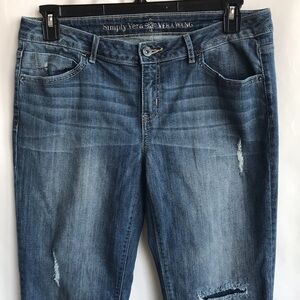 Simply Vera Vera Wang relaxed boyfriend denim blue jeans, size 6. Lightly (intentionally) distressed. Good preowned condition.