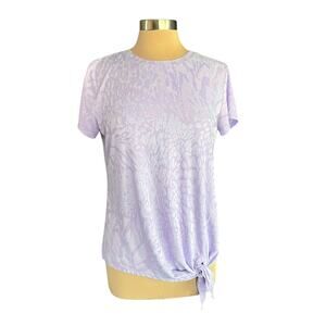 Simply Vera VeraWang Lavender Tone-on-Tone Textured Tie Front Knit Top MEDIUM. Textured in an abstract animal print with a touch of shimmer. Relaxed fit.