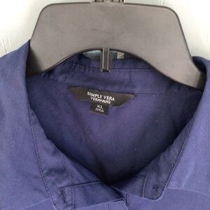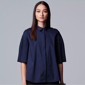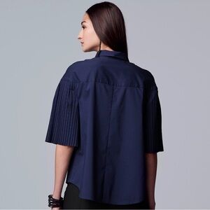 Simply Vera VeraWang Women's Blouse Navy Blue Pleat Sleeve