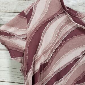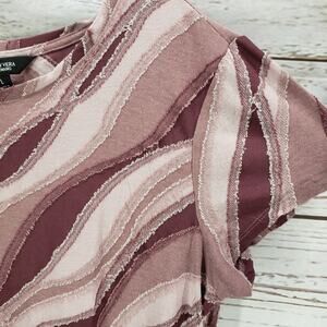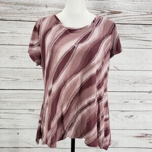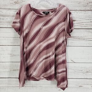 Simply Vera Verawang - Women's Mauve Textured Asymmetrical Hem Short Sleeve Top Size Large. Polyester, rayon fabrics. Approx. measurements pit to pit 20 in. Top length 25 in. Pre-owned in good condition, no rips or stain.