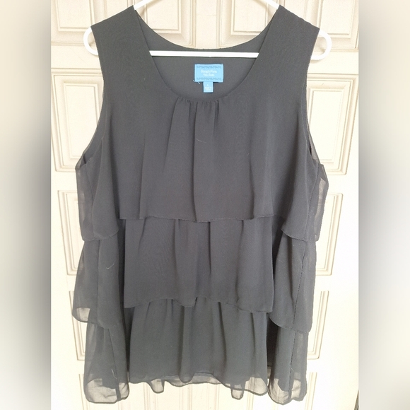 Simply Vera Wang 3 Tier Ruffle Tunic SzL Chiffon Like Black Pullover Sleeveless
