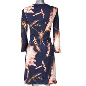Simply Vera Wang ¾ Sleeve Blue Pink Diagonal Drape Abstract Print Dress size L