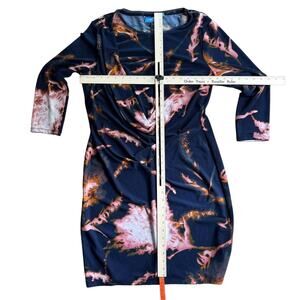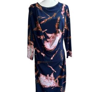 Simply Vera Wang 3/4 Sleeve Blue Pink Diagonal Drape Abstract Print Dress size L