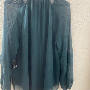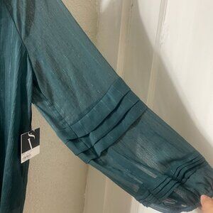 Simply Vera Wang Blouse XL Green Split Neck Layered Long Sleeve Chiffon NWT