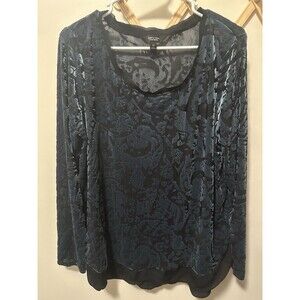 Simply Vera Wang Burnout Velvet Long Sleeve Blouse Tunic Top XL