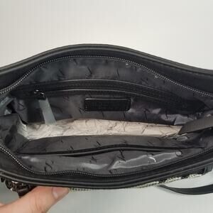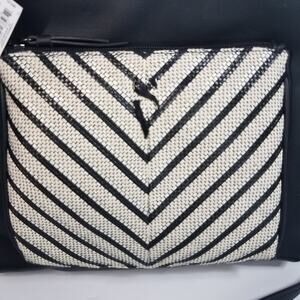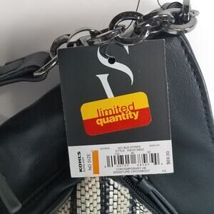 Simply Vera Wang Crossbody Purse Black White Stripes w/ Chain Accent Strap.