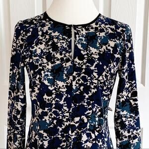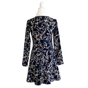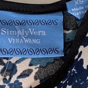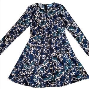 Simply Vera Wang Dress Blue Tan Floral A Line Long Sleeve Fit & Flare Size XS