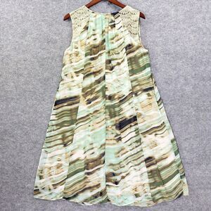 Simply Vera Wang Dress Sz L Green Cream Abstract Pleated Sleeveless Boho Comfort