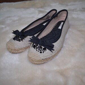 Simply Vera Wang Espadrilles Flats Beige Black Embellished Slip-On Size 7.5