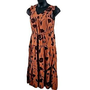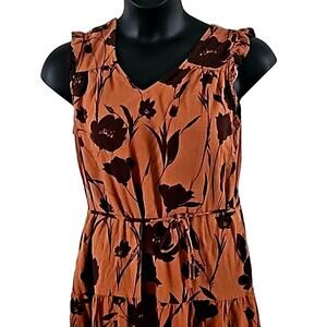 Simply Vera Wang Floral Brown Maxi Dress - Size Medium